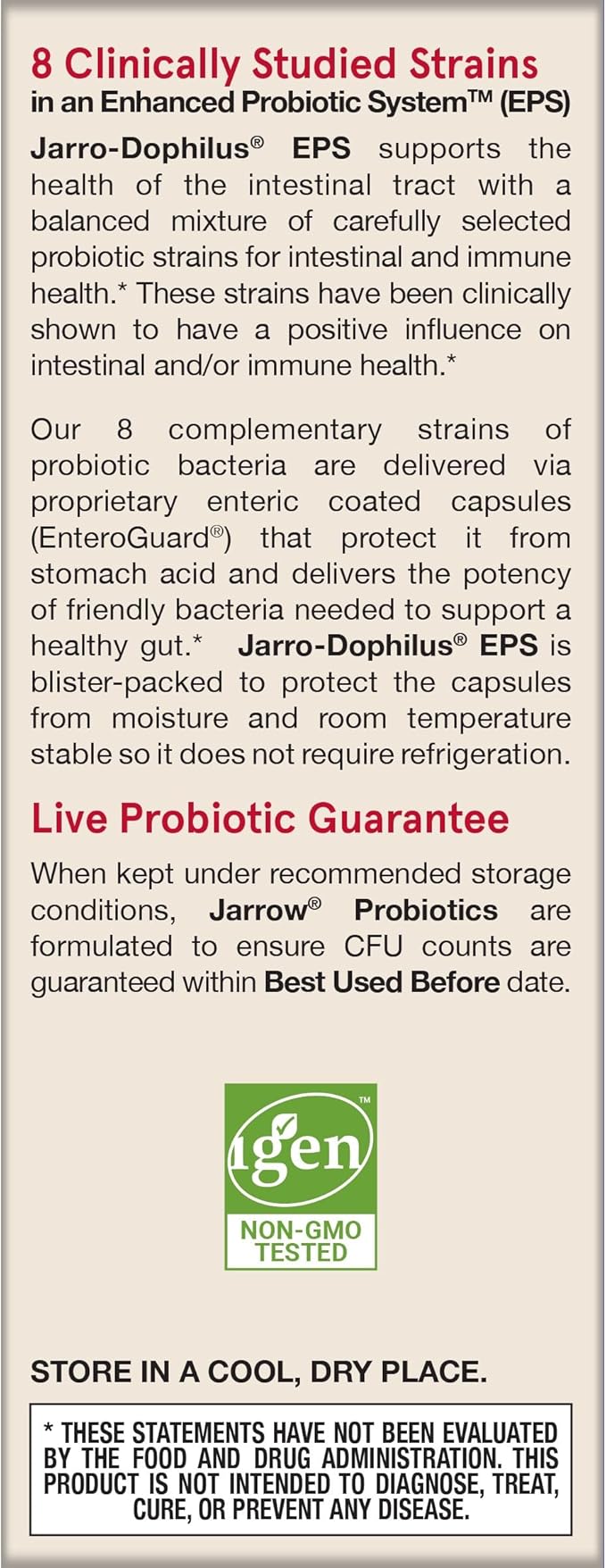- Blister-packed Jarro-Dophilus probiotics featuring proprietary Enteroguard coating to protect the friendly bacteria in each capsule from stomach acid for daily gut balance