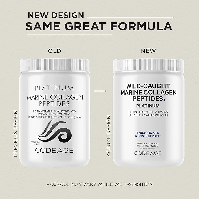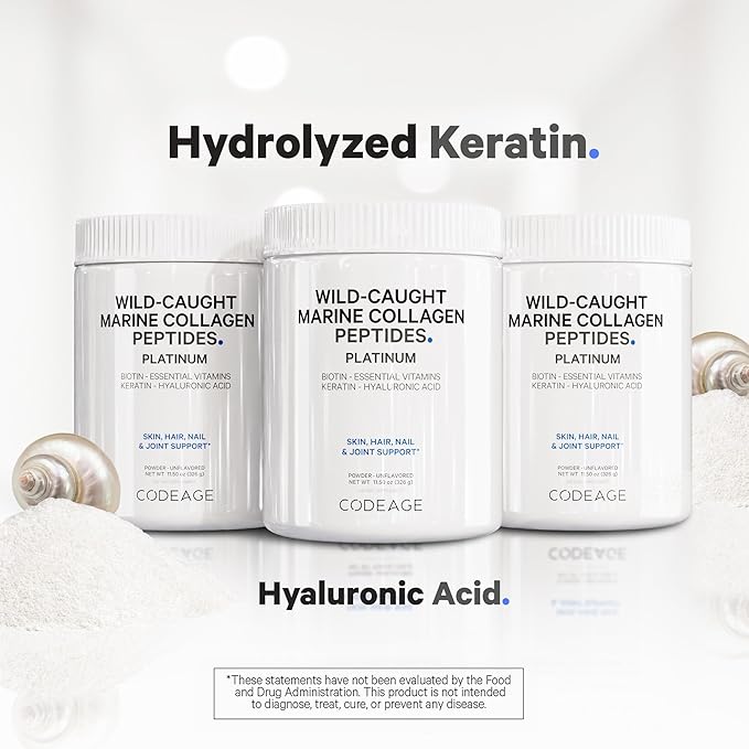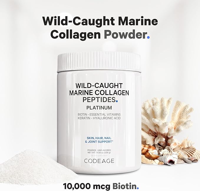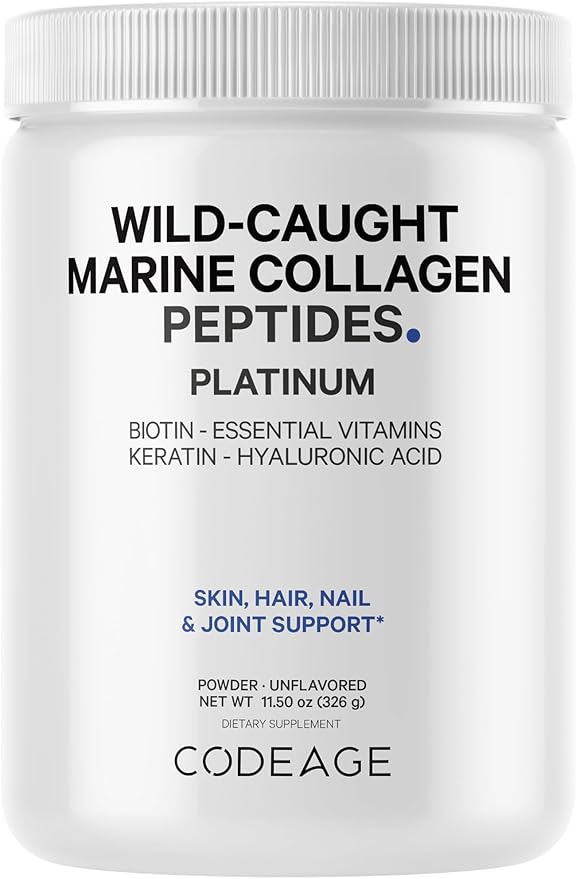 - Advanced Marine Collagen Complex: Codeage Wild-Caught Marine Collagen Peptides Platinum edition combines pure hydrolyzed marine collagen peptides sourced from wild-caught white fish in North American waters, providing Type I and III collagen in one comprehensive formula.