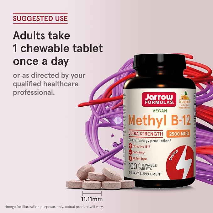 - ULTRA STRENGTH FORMULA: Jarrow Formulas Methyl Vitamin B12 2500 mcg dietary supplements deliver biologically active forms of vitamin B12 that support cellular energy production and brain health(1)