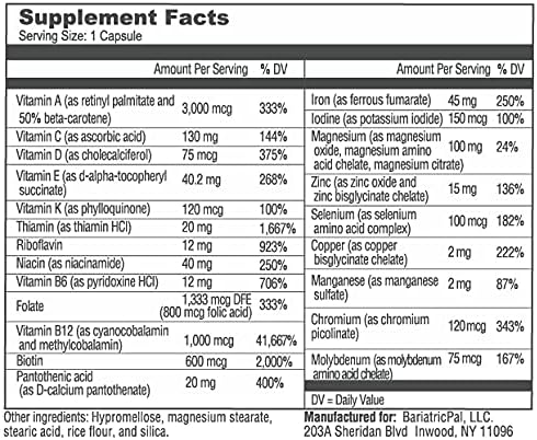 - BariatricPal Multivitamin ONE was designed and developed by a team of the world's leading Bariatric medical professionals. The fast-dissolving small veggie capsules are very easy to swallow and use. You only need one a day to meet recommendations for bariatric patients.