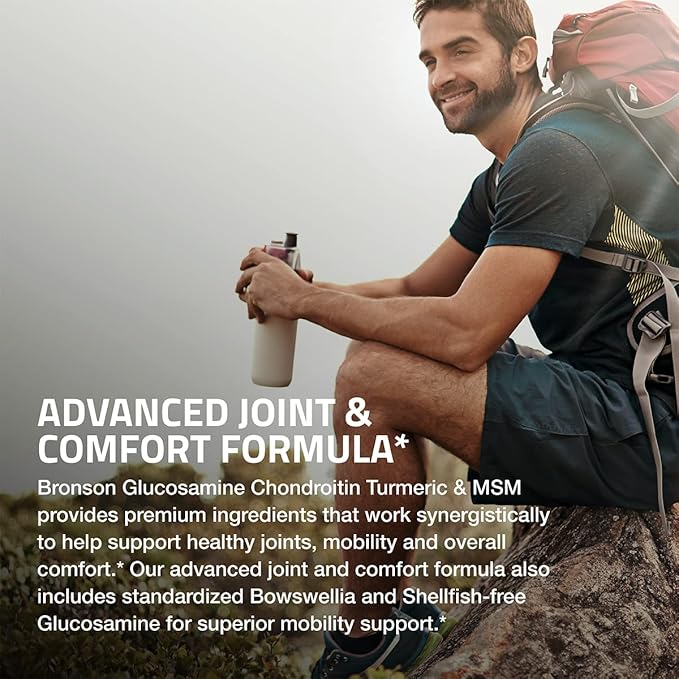 - Joint Health & Mobility*: Bronson Glucosamine Chondroitin Turmeric & MSM provides premium ingredients that work synergistically to help support healthy joints, mobility and overall comfort.* Our advanced joint and comfort formula also includes standardized Bowswellia and Shellfish-free Glucosamine for superior support.*
