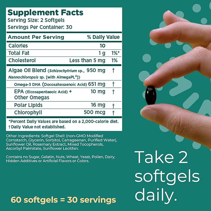 - Fuel Your Workout: DHA algae supplement , the omega-3 fat, supports healthy musculoskeletal function and supports the functions of key neurotransmitters in the brain essential for mental performance and mood*
