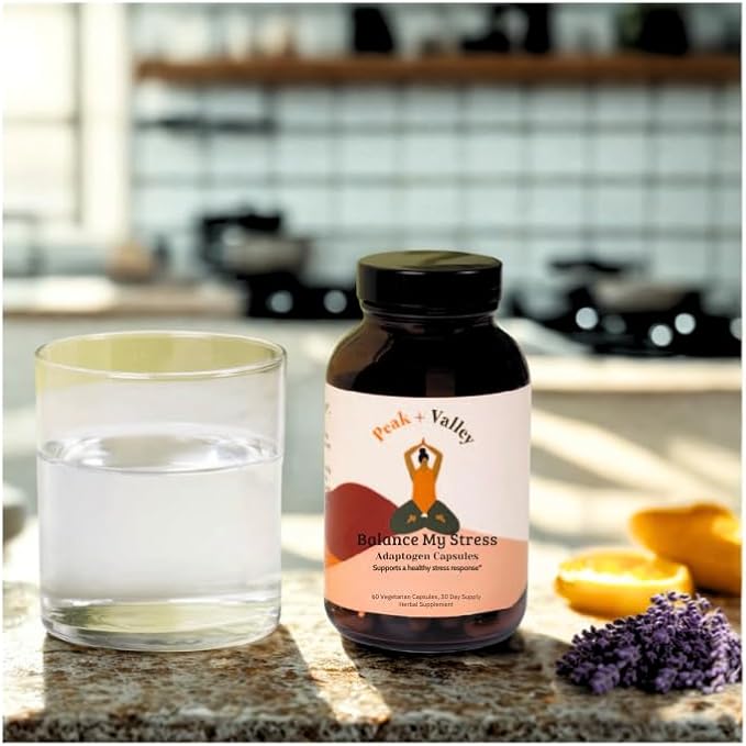 Peak + Valley Stress Relief Supplement for Mood Support Balance My Stress Capsules - Contains Adaptogens, Ashwagandha, Eleuthero Root, Reishi Mushroom Supplement - Natural Mood Stabilizer - 60 Ct