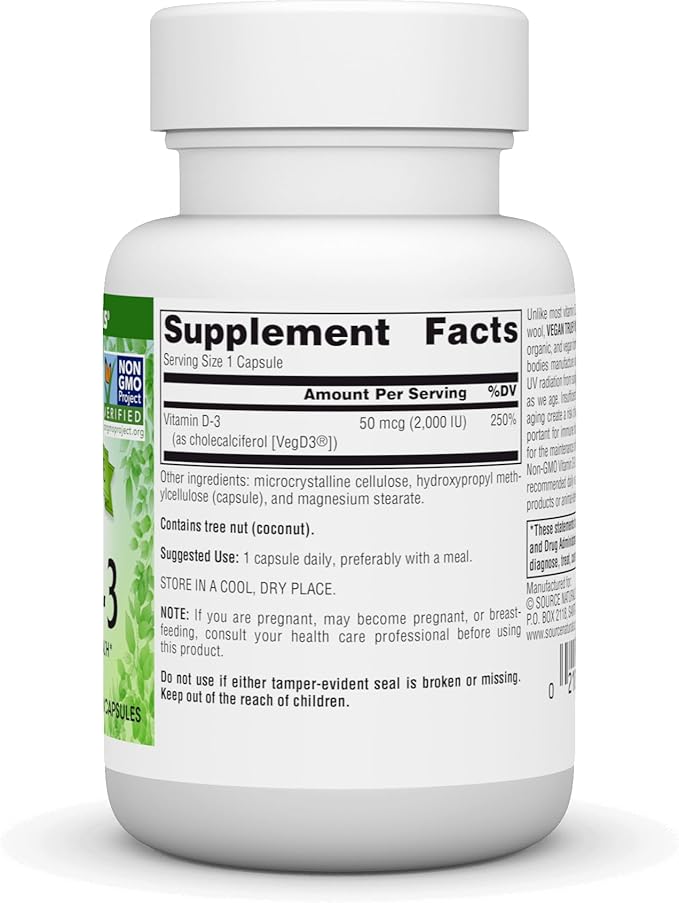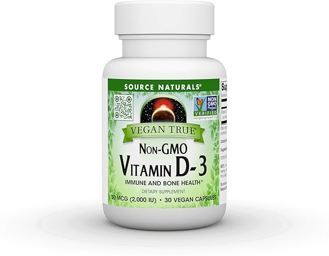 Source Naturals Vegan True, Non-GMO Vitamin D-3, Dietary Supplement for Immune and Bone Health*, 2,000 IU - 30 Capsules
