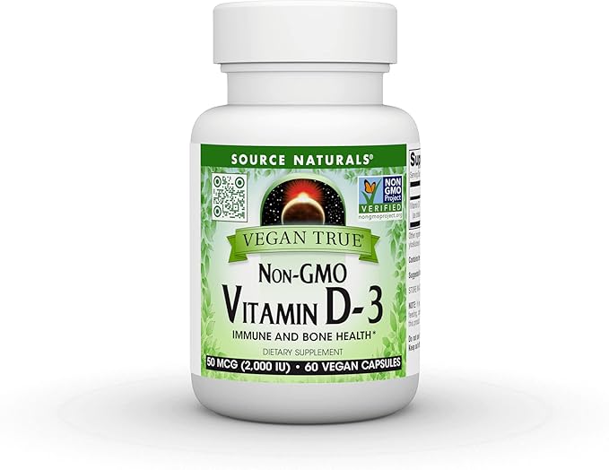- Source Naturals Vegan True Non-GMO Vitamin D-3 is a Non-GMO project verified, vegan, and organic form of vitamin D-3 sourced from algae.