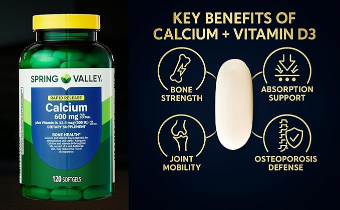 Spring Valley Calcium 600 mg + Vitamin D3, 120 Softgels | Bone Health, Strong Teeth & Osteoporosis Support | Rapid-Release Capsules, Gluten-Free Supplement Bundle with Luall's 45 Diabetes Decoded