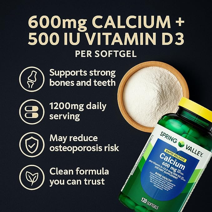 - 600mg Calcium + 500 IU Vitamin D3 per Softgel – Provides essential nutrients to support strong bones and teeth.*