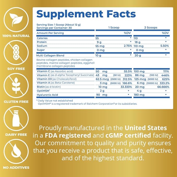 - Enhanced with Powerful Ingredients: Enriched with Hyaluronic Acid for hydration, MSM for joint support, and Biotin for added hair and nail strength.
