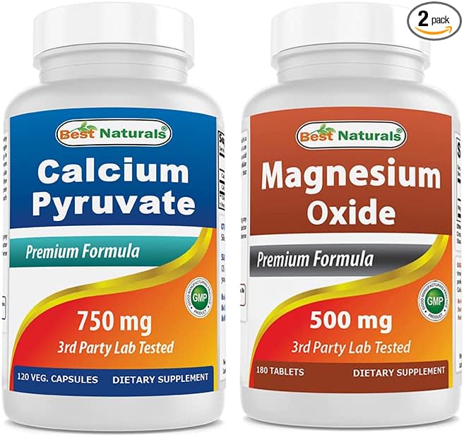 - ½ Teaspoon (2g) of Calcium Pyruvate per Serving, 114 Servings per bottle., 500 mg of Magnesium Oxide per Tablet - 180 Tablets per Bottle.