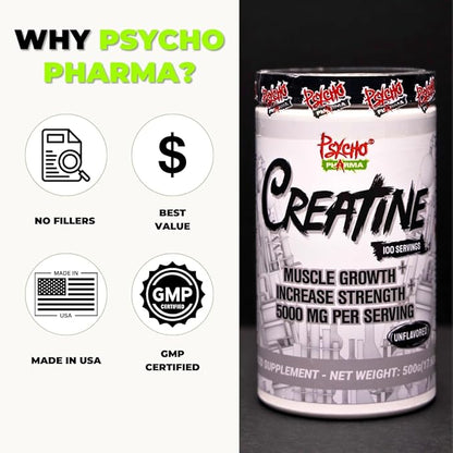 Psycho Pharma Creatine - 5g of Premium Creatine Monohydrate per Serving, 100 Servings