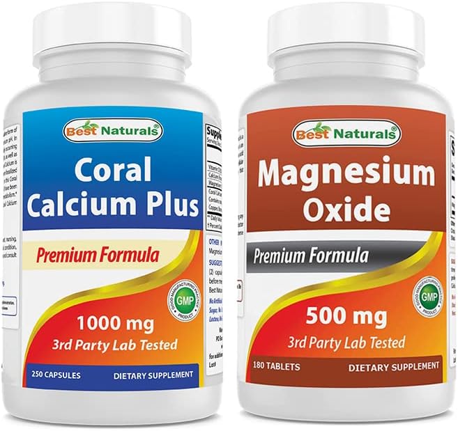 - 1000 mg of Coral Calcium per Serving - 125 Servings per Bottle. , 500 mg of Magnesium Oxide per Tablet - 180 Tablets per Bottle.