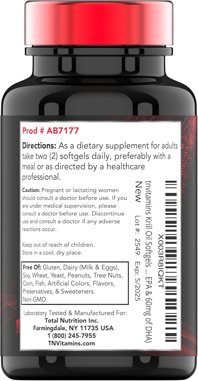 - ✔️ TNVitamins 100% Pure Antarctic Krill Oil 1000 mg x 120 Softgels.