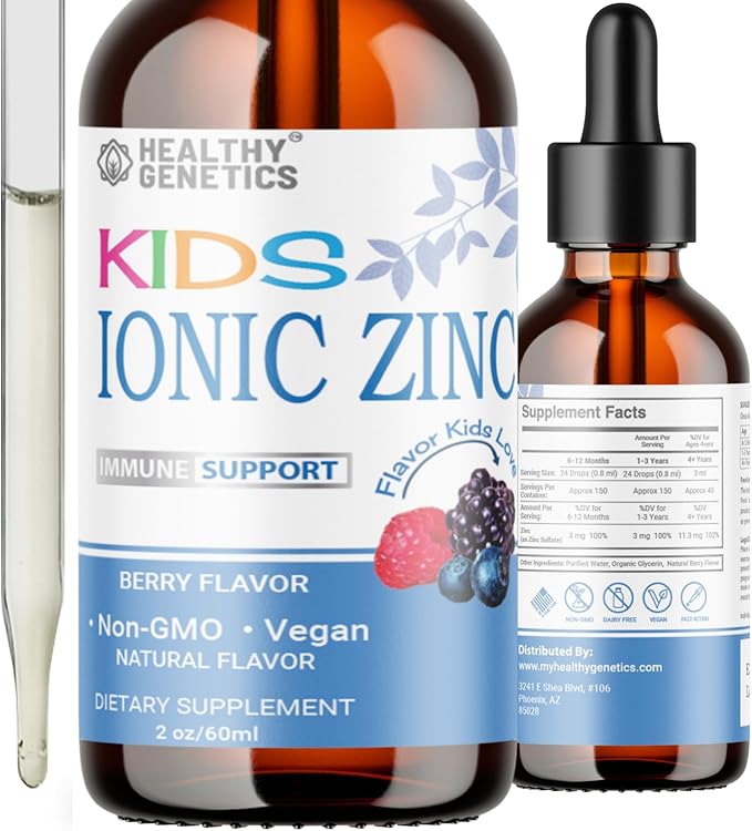 Ionic Liquid Zinc Drops for Kids | 30 Day Supply | Zinc Sulfate | Immunity, Mood, Brain Thyroid | 2 Oz