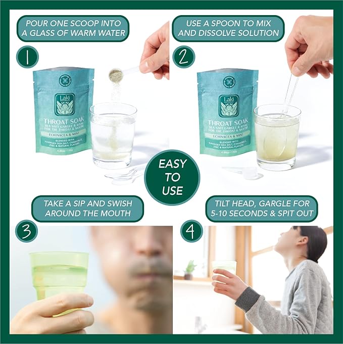 - Contains Zinc, Chamomile, Echinacea, and Mint blended with pure Hawaiian Sea Salt for a clean and healthy throat and mouth, while also freshening breath and supporting immune system and health restoration.