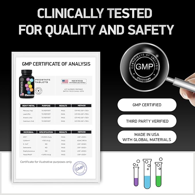 - MADE WITH LOVE IN THE USA with premium global ingredients. Non-GMO and gluten free prostate supplements for men. Produced in cGMP approved facilities and tested for optimal quality and peace of mind.