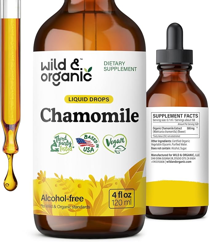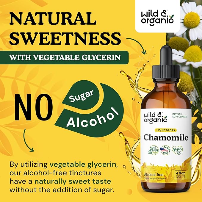 - Sweetness Without Sugar: Enjoy a pleasant supplement experience with Wild & Organic chamomile herb, which features a naturally sweet taste. Our liquid chamomile flower drops use glycerin for natural sweetness, with no added sugar.