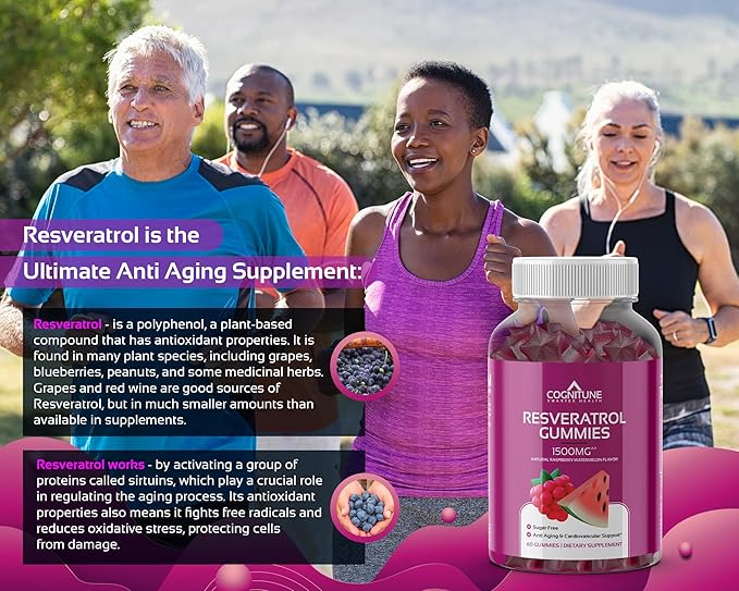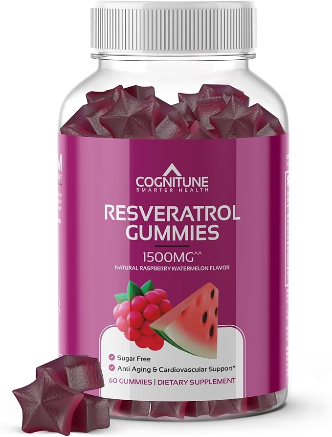 - Convenient & Healthy Nutrition - Resveratrol is a naturally found in grapes, berries, and other plants. Our gummies are packed with 1500mg of resveratrol per serving, equivalent to 300 glasses of red wine - one of the popular resveratrol sources. Get more benefits without the drawbacks of alcohol intake.