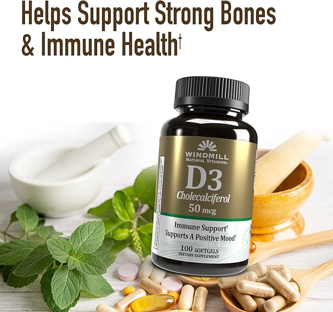 - PROMOTES IMMUNE HEALTH. Windmill Natural Vitamins Vitamin D3 plays an important role in the immune function.
