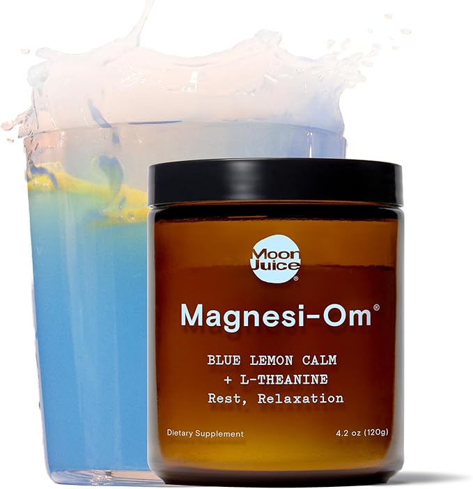 Moon Juice - Magnesi-Om, Blue Lemon - Jar (30 Servings) - Support Brain Health & Rest - Magnesium Powder - L-Theanine - Regularity - Glass Bottle - 100% Traceable - Vegan & Non GMO - 4.2oz