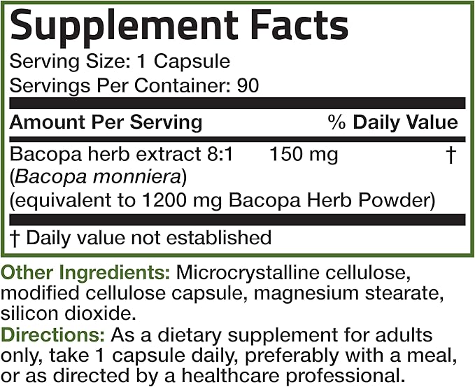 Bronson Bacopa Supports Healthy Brain Function and Mental Performance, Traditional Herb, Non-GMO, 90 Vegetarian Capsules