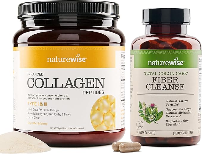 NatureWise Enhanced Collagen Peptides (45 Servings) - Hydrolyzed Type I & III + NatureWise Total Colon Care Fiber Cleanse with Herbal Laxatives, Prebiotics, & Digestive Enzymes
