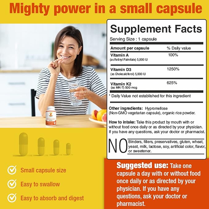 - Potent blend: Our blend of vitamins ADK provides comprehensive support for a healthy immune system, strong bones, and optimal eye & teeth health. This ADK vitamin supplement delivers powerful benefits to enhance your overall well-being.