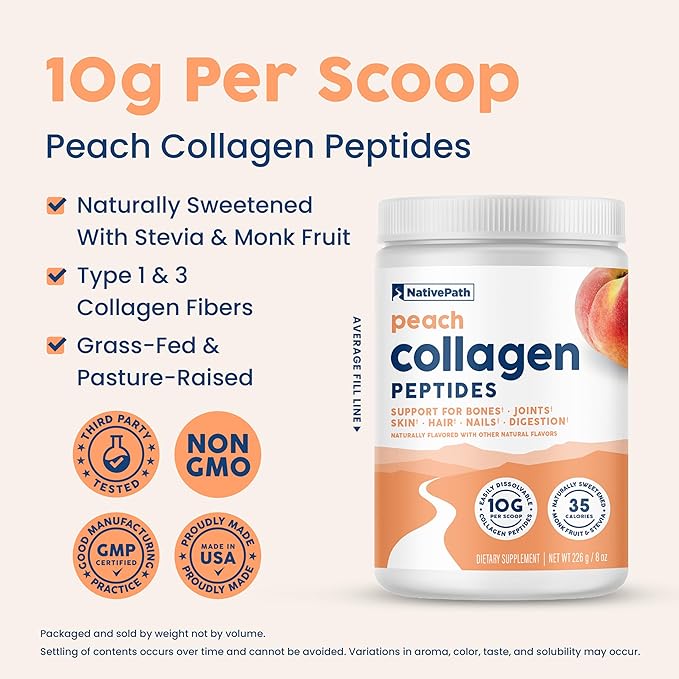 - EASY TO USE: Simply mix one scoop of NativePath Peach Collagen Peptides with 8 ounces of water and stir until completely dissolved.