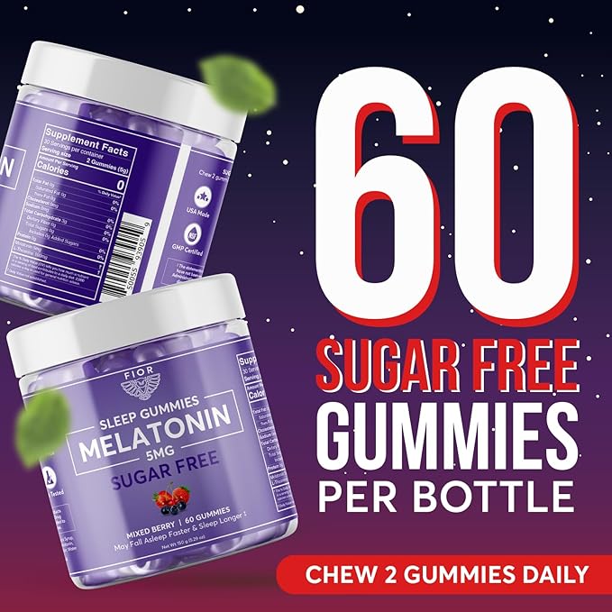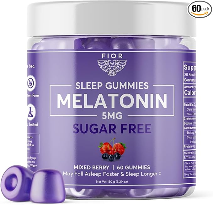 FIOR Sugar Free 60-Count Sleep Aid & Calm Gummies, Melatonin Gummies Sleep Aids for Adults & Kids. Gummy Vitamins for Sleep. Adults & Kids Melatonin & L-Theanine Gummies Natural Herbal Sleep Aid.