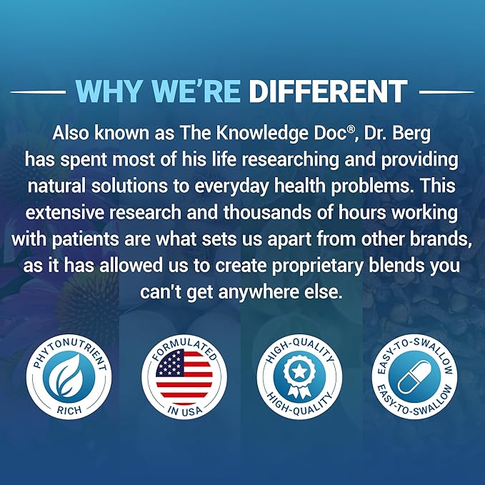 - ๐ช๐๐ฌ ๐ช๐โ๐ฅ๐ ๐๐๐๐๐๐ฅ๐๐ก๐ง - Also known as The Knowledge Doc, Dr. Berg has spent most of his life researching and providing natural solutions to everyday health problems. This extensive research and thousands of hours working with patients are what sets us apart from other brands, as it has allowed us to create proprietary blends you canโt get anywhere else.