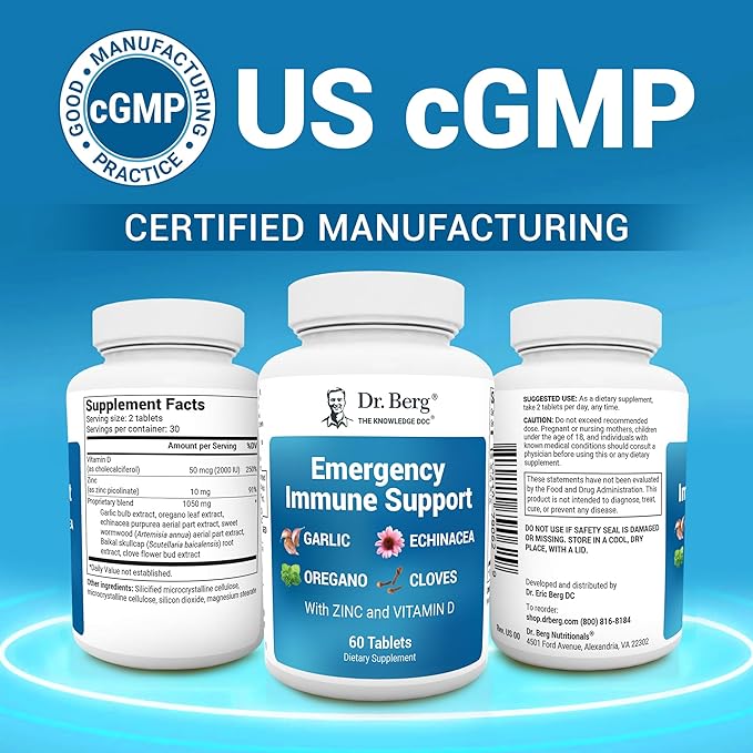 Dr. Berg Emergency Immune Support w/Echinacea - Potent Blend of Herbal Extracts (Warning: Strong Herbal Smells) - Immune Support Supplement Includes 2,000 IUs of Vitamin D & 10mg of Zinc - 60 Tablets