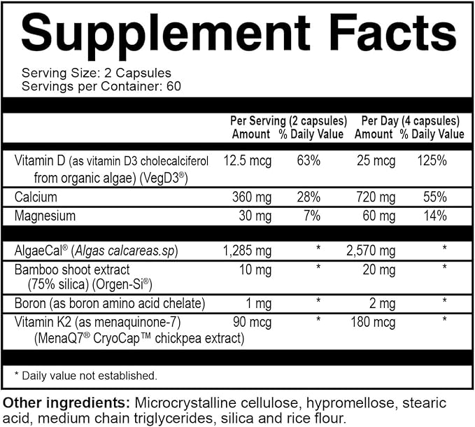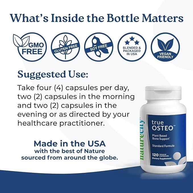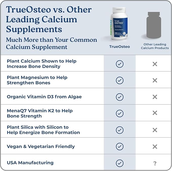 NatureCity True-Osteo Plant-Based Supplement for Bone Strength | AlgaeCal Calcium & Magnesium, Plant-Based Vitamin D3, Vitamin K2, Silicon| Gentle on Stomach (360 Capsules)