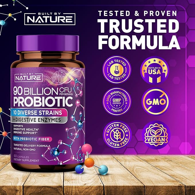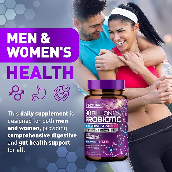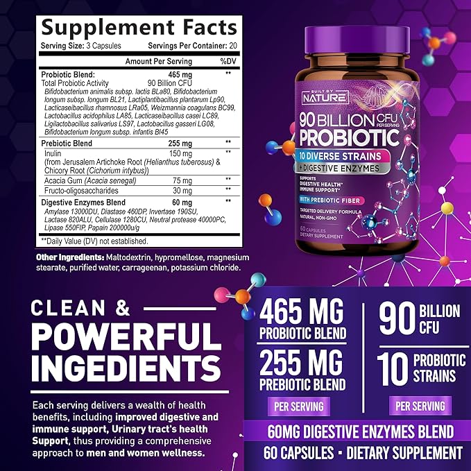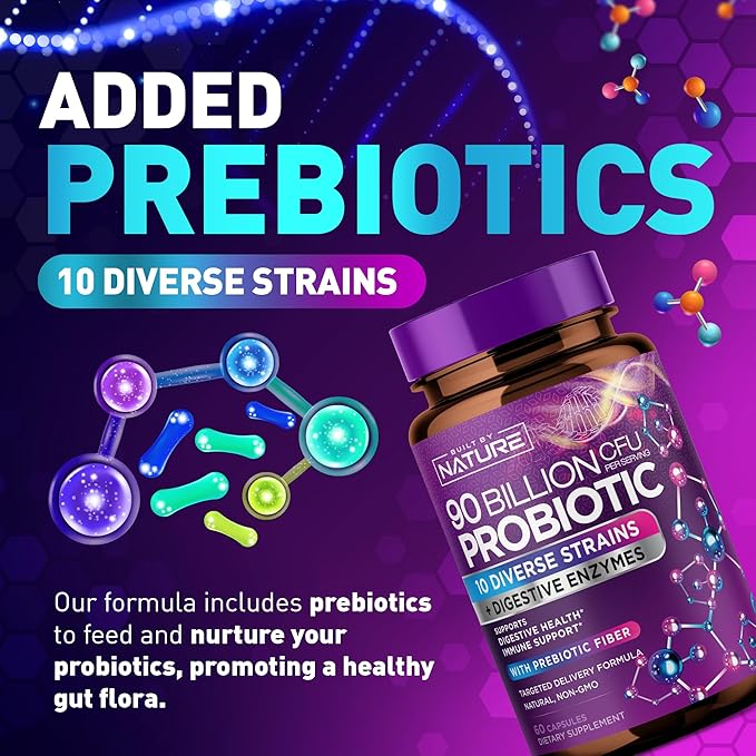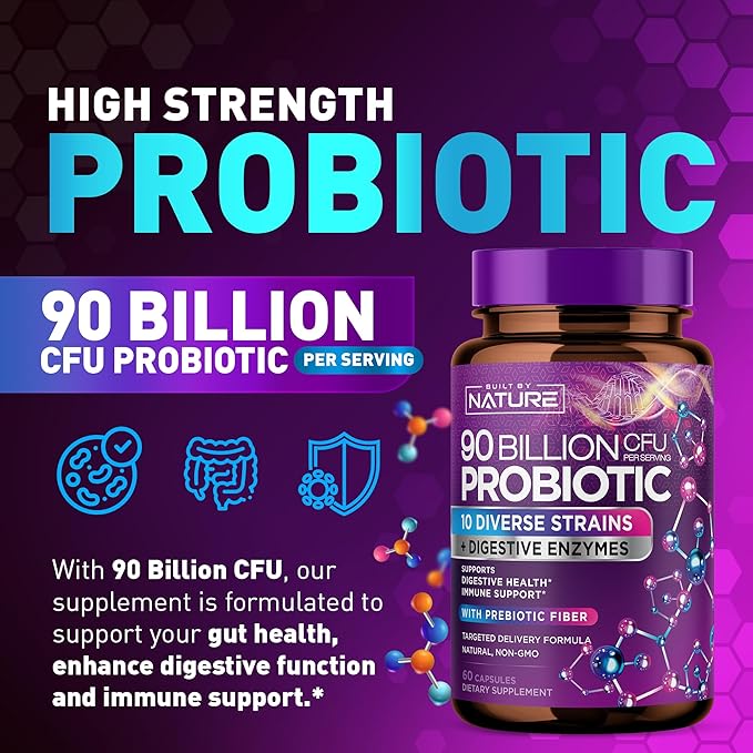 - High-Strength Probiotic: With 90 Billion CFU, our supplement is formulated to support your gut health and enhance digestive function.