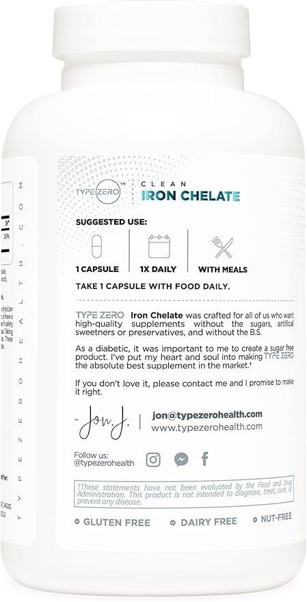 Type Zero Iron Chelate Capsules (18 MG, 240 CAPS) from Ferrochel - Non-GMO and Gluten Free