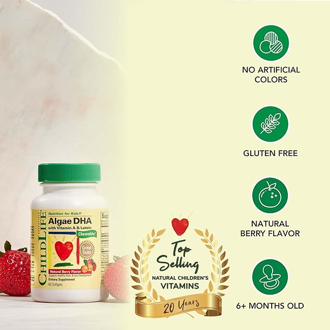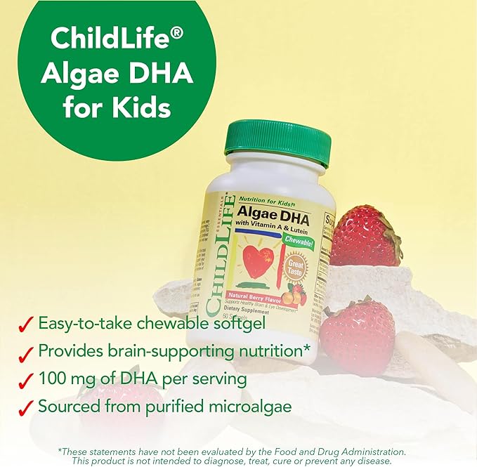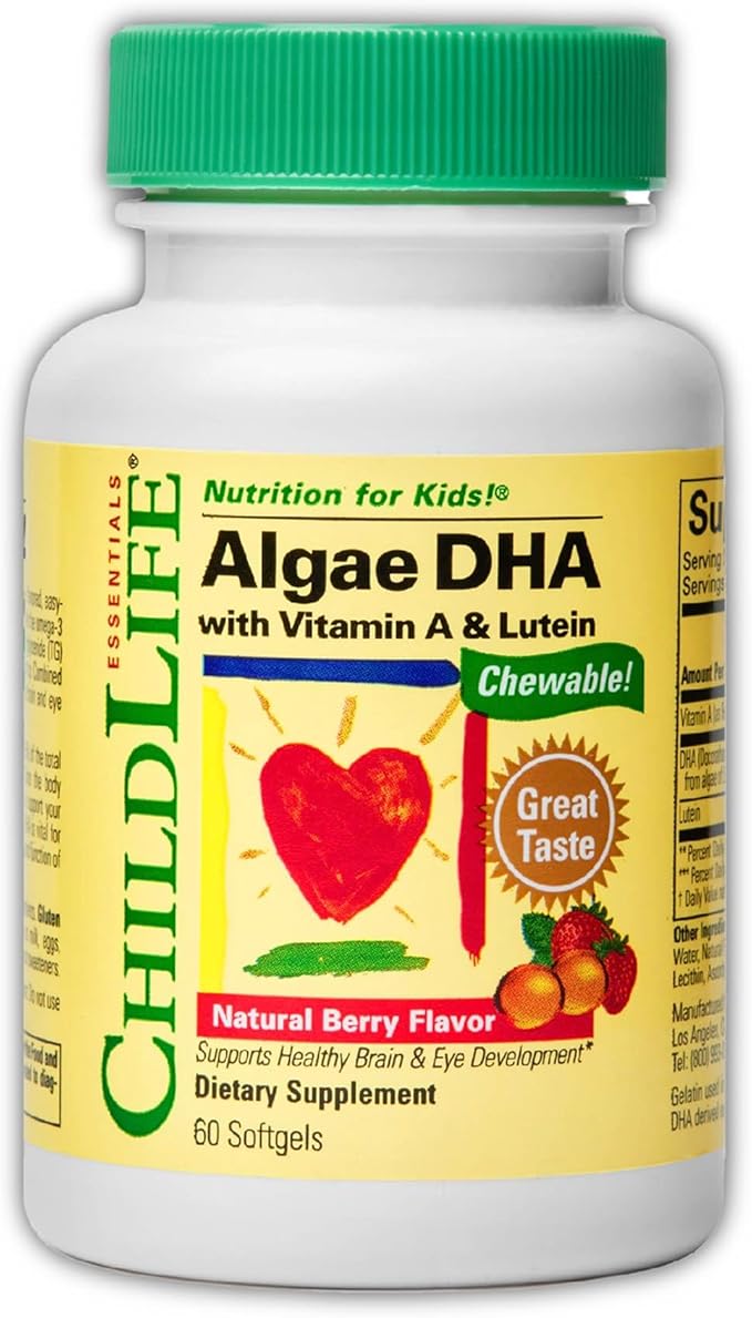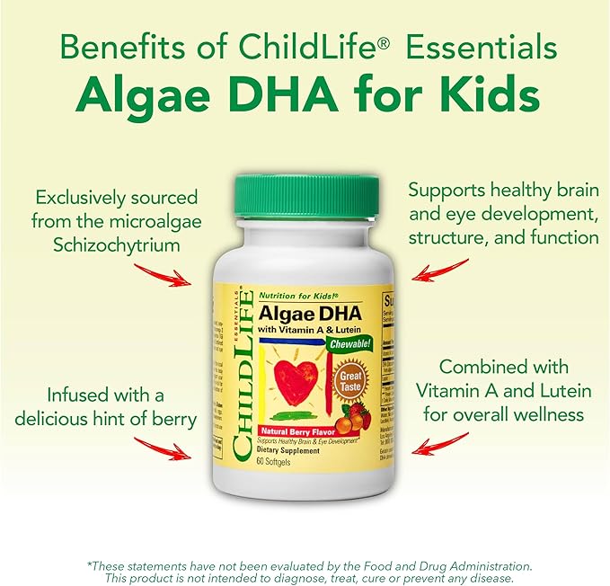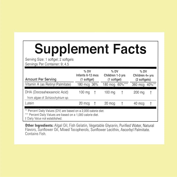 - Nutrient-Packed Formula - Each Algae DHA Chewable Softgel delivers 100 mg of DHA, 20 mcg of Lutein, and 180 mcg of Vitamin A, providing essential nutrients in every serving to support your child's healthy development.