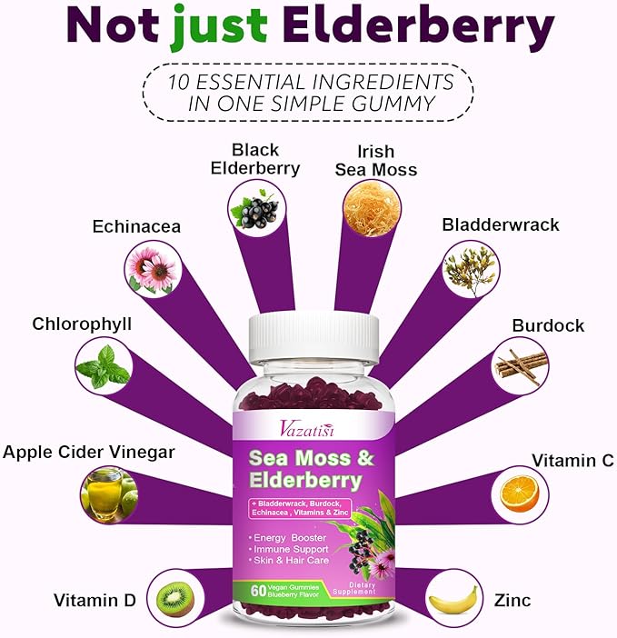 - Great For The Whole Family: Sea moss and elderberry gummies are made with pure ingredients, A safe and perfect choice for your whole family, including women, wen, adults, kids and the elderly