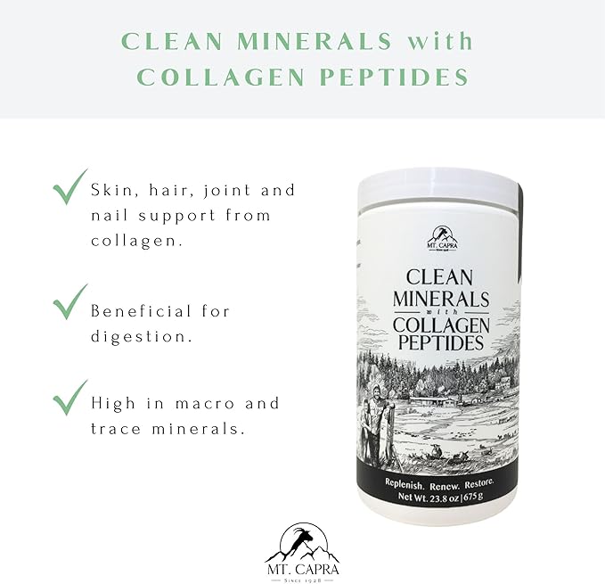 Mt. Capra Clean Minerals with Collagen Peptides | Whole Food Minerals from Goat Milk Whey and Grass-Fed Type I and III Collagen Peptides | 10 g Protein per Serving | Unflavored | 20 Servings - 23.8 oz