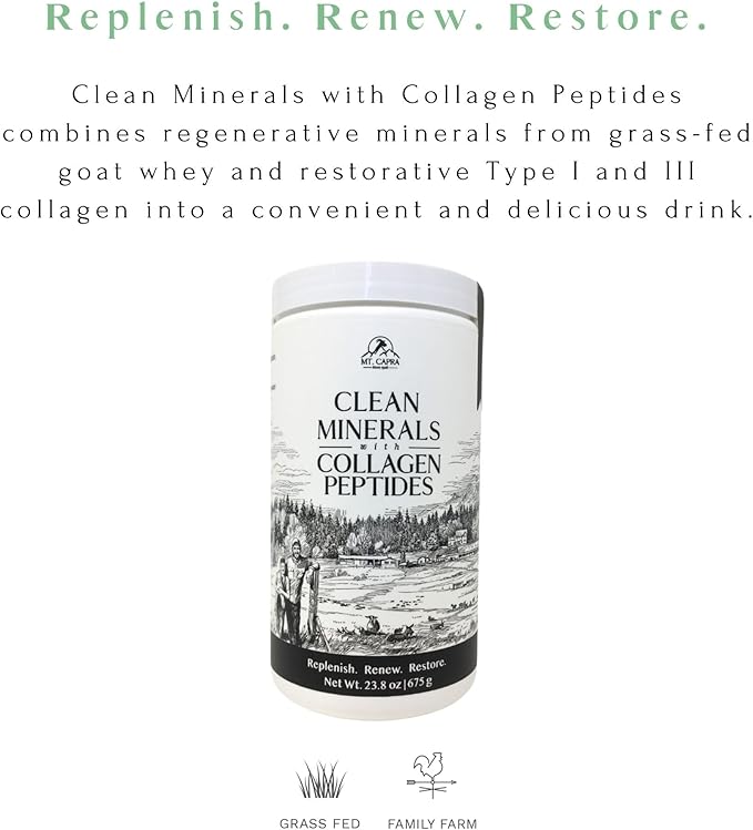 - Combines regenerative minerals from grass-fed goat whey and restorative type I and III collagen into a convenient and tasty drink