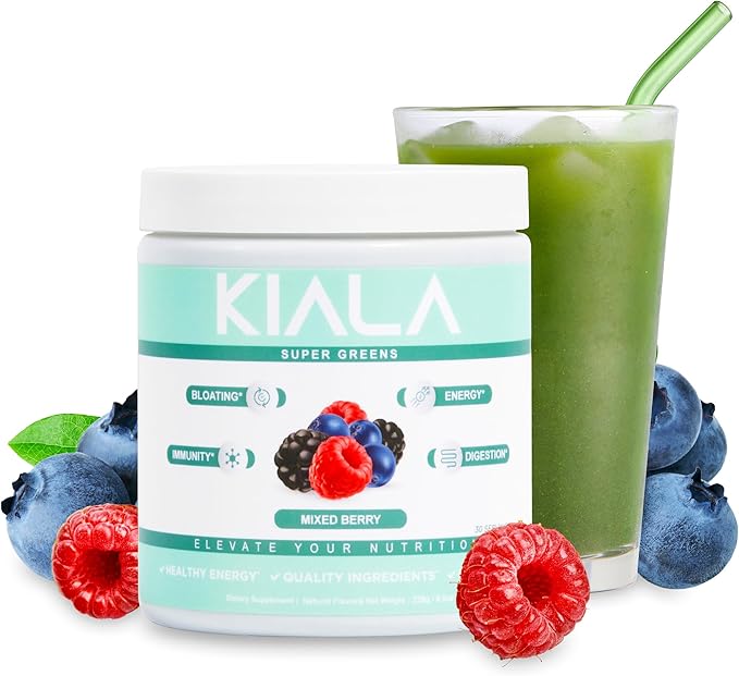 - DELICIOUS MIXED BERRY FLAVOR: Enjoy a burst of berry goodness with the Mixed Berry flavor of Kiala Super Greens. Say goodbye to the typical grassy taste – this greens powder is crafted to be enjoyed on its own or blended with your favorite cold beverages, making it simple to stick to your wellness routine with a flavor you'll look forward to every day.