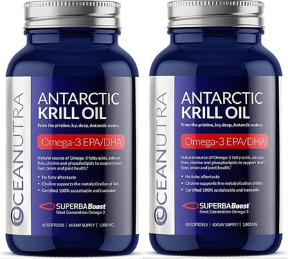 100% Pure Krill Oil 1000MG 120-Day Supply Double Strength 56% Phospholipids Astaxanthin Sustainable Antarctic SuperbaBoost Omega 3 EPA DHA Heart Brain Skin Care, Third-Party Tested, No Fish Oil