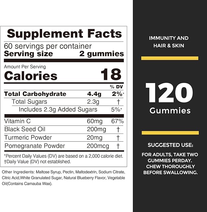 - 【😋DELICIOUS AND CONVENIENT】Our black seed oil gummies are not only good for you, but they also taste great. They are 100% vegan and made with natural flavors and sweeteners. These easy to swallow blueberry flavor gummies making it a tasty and convenient way to get the health benefits of black seed oil.