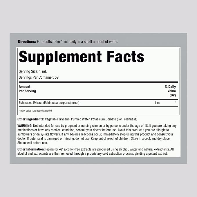 Piping Rock Echinacea Drops | 4 fl oz | Liquid Extract Tincture | Premium Botanical Herb | Vegetarian Supplement | Alcohol Free, Non-GMO, Gluten Free