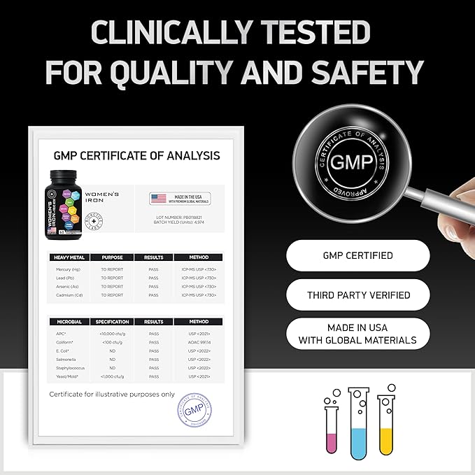 - MADE IN THE USA with premium global materials in cGMP approved facilities. Vegan, non-GMO, and gluten-free, bespoke, gentle but powerful womens iron supplements plus folate.