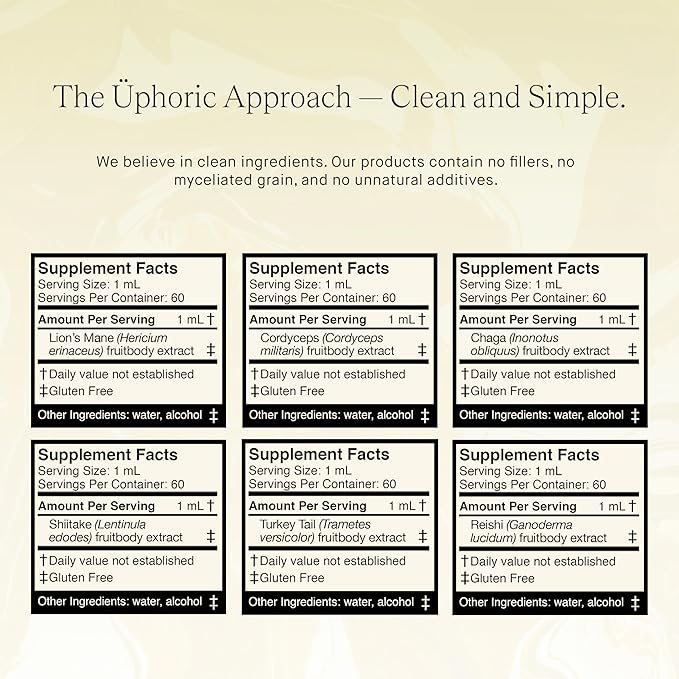 - Grown By Nature. Crafted By Hand. - All of our tinctures are made in small batches with great care and attention to detail. The Uphoric Urth Discovery 6 Mushroom Gift Set, is a non-gmo, vegan, and gluten free extract collection that stimulates a healthy immune response and promotes a thriving, healthy lifestyle.