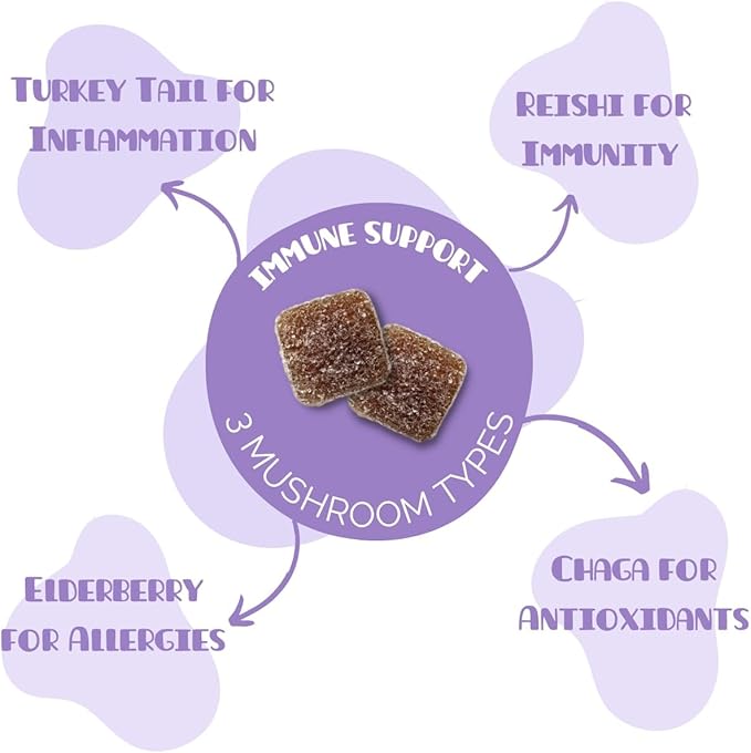 - The Power of Mushrooms: Unleash the power of one of Mother Nature's greatest superfoods - mushrooms! Our Everyday Blend gummies are holistically balanced to support your child's well-being. They include 50mg of Elderberry for allergy support, 200mg of Chaga for antioxidants, 200mg of Turkey Tail to support a healthy gut, and 200mg of Reishi to for immune support.