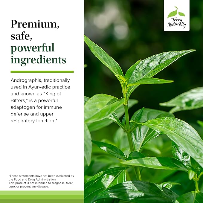 Terry Naturally Andrographis EP80 with Umckaloabo - Dietary Supplement to Support Mucus Relief & Respiratory Health - Vegan Capsules to Aid Immune Health - 60 Capsules (60 Servings)