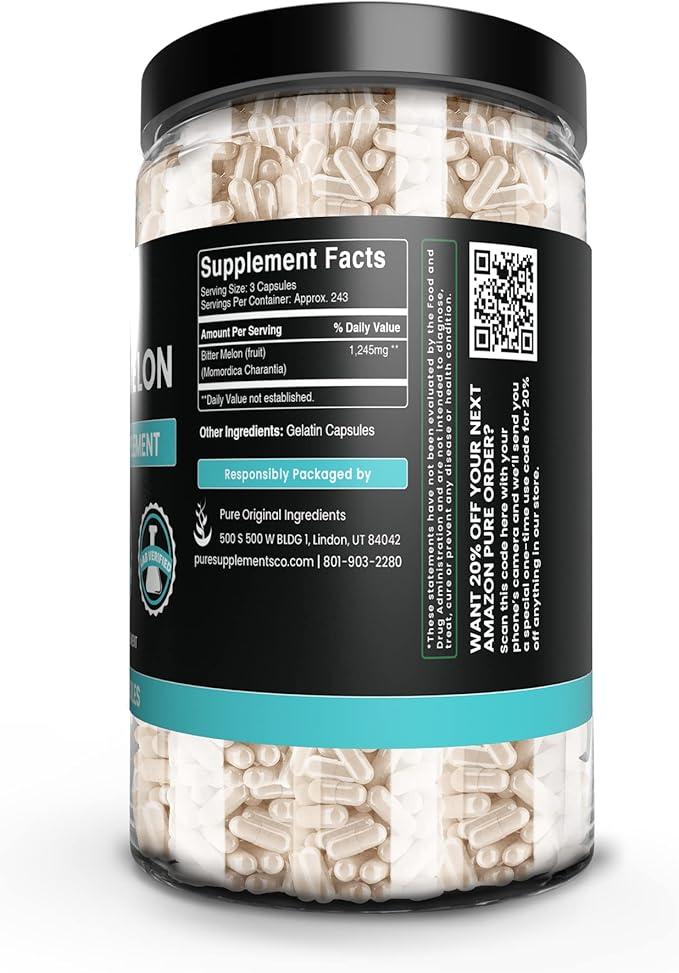 - Bitter Melon Extract is a natural source of chlorogenic acid, 7 month supply