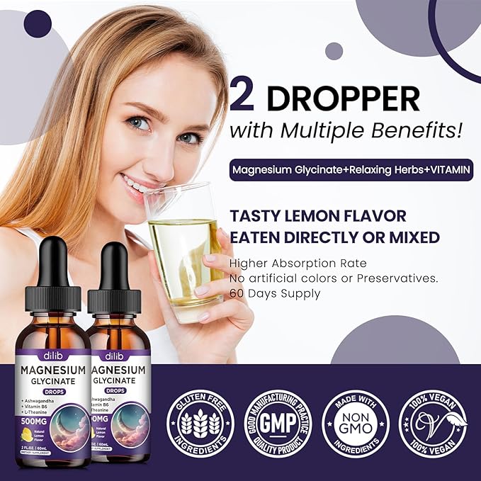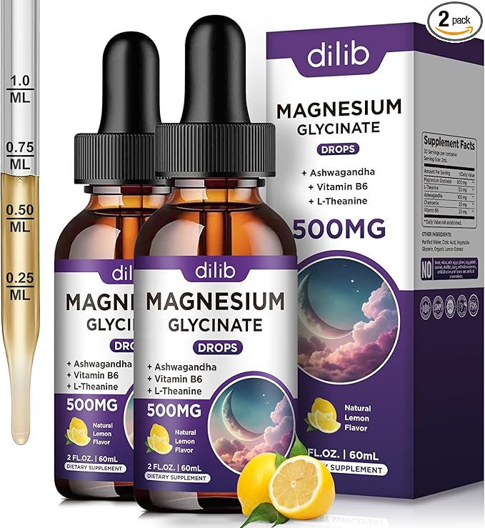- ✅【ADVANCED FORMULA】Our magnesium drops supplement Contains Magnesium glycinate 500mg, l-theanine, ashwagandha, Chamomile, Vitamin B6. 2ml per serving, 30 servings per bottle. Magnesium glycinate drops are an excellent alternative to pills, capsules, or tablets, with high bioavailability and good absorption!*