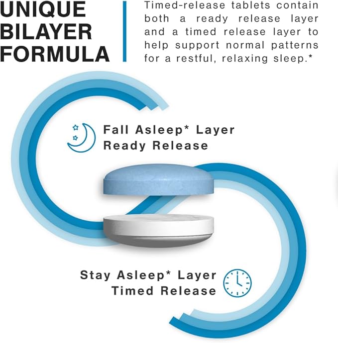 - Dual-Release Formula – Features a bi-layer design with ready release and timed release to help you fall asleep faster and stay asleep longer.*