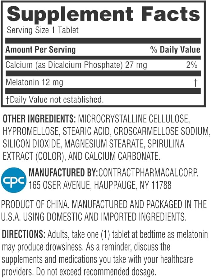 Earth's Splendor Melatonin 12 MG Bilayer Tablets, Sleep Aid Supplement, 60 Count - 2 Month Supply Melatonin