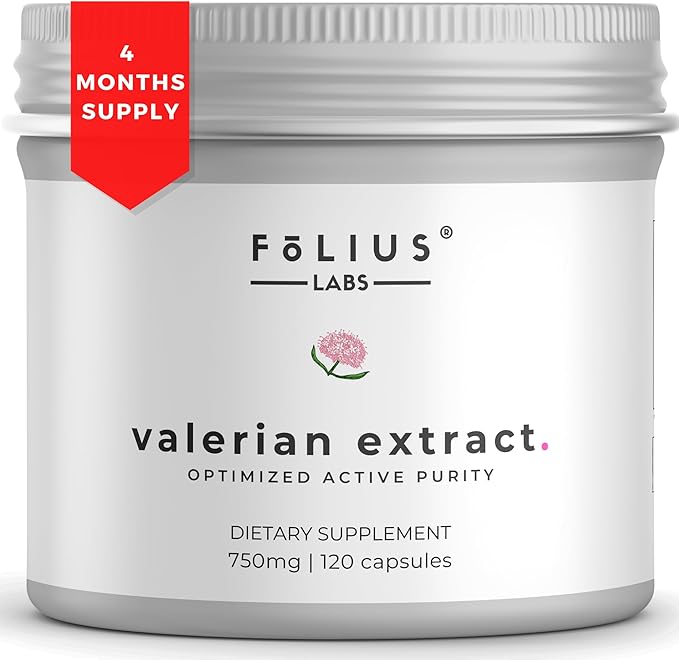 Valerian Root 4:1 Extract Capsules 750mg – Optimized Active Purity – 4X Concentration Valerian Root Extract Supplement - Gluten Free, Non-GMO - Promotes Relaxation - 120 Capsules